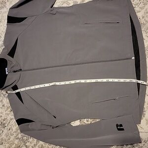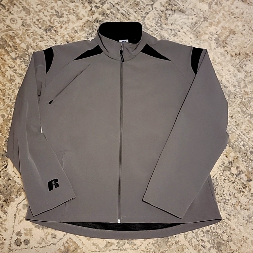 Russell woman size large athletic jacket in like new condition 3 zip pockets in front 1 zip pocket on back waist area lightweight