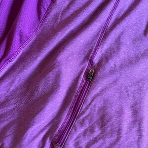 Pink athletic jacket. Pockets on front and back.