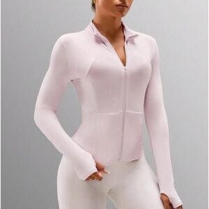 Athletic jacket zip up bomber pocket strawberry milkshake light pink NWT