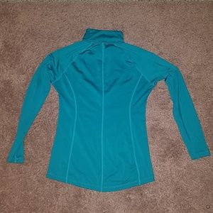 Long sleeve athletic pullover with 3 quarter zip i would describe the color as Caribbean Current