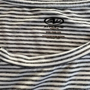 Athletic striped dry fit shirt, size XXXL. Grey and white stripes, in good condition.