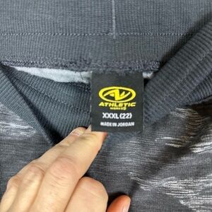 Athletic xxxlarge. 22 20-1/2 w 12-1/2 rise. Inseam 27-1/2 like new camo grey