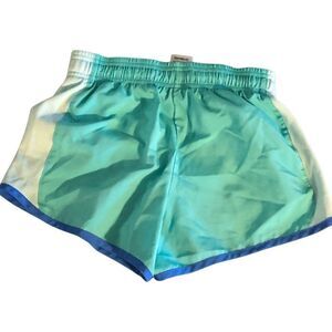Cute girls Athletic Works shorts with built in liner. Green and blue athletic shorts with "Elite Gymnastics" embroidered on the bottom right leg. Elastic waist with draw string. Shorts are in excellent used condition, no signs of wear on the outside, one pull on the inside liner (shown in pictures). Size M (7/8)