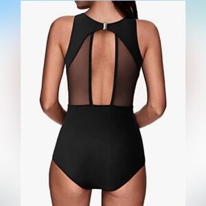 Athmile Black One-Piece Mesh, High-Cut, Tummy Control Swimsuit