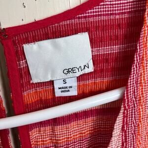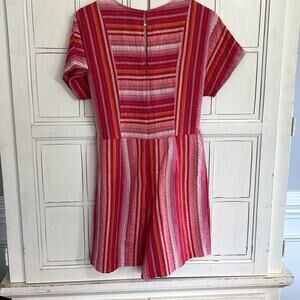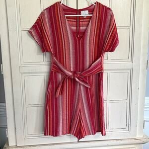 Anthropologie Greylin size small romper with pockets in excellent condition. Zips in the back. Reds and orange. Attached belt ties in the front. Measures 17” from armpit to armpit. 14” across the waist and it is 32” long. Inseam is 4”. It is cotton and the shorts have a cotton lining.