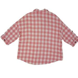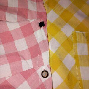 Atikshop Button-Up Shirt Pink & Yellow Gingham Colorblock Front Pocket Womens
