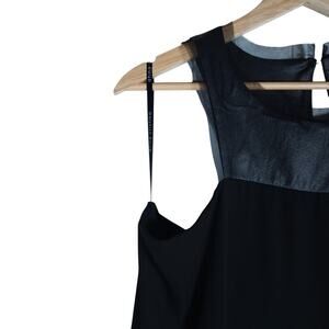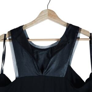 Make a bold statement with this Atina Cristina Black Asymmetrical Tank Top in size M. Designed with a sheer mesh panel neckline and an edgy asymmetrical hem, this unique top is perfect for elevating your night-out look or adding a modern, minimalist touch to any outfit.