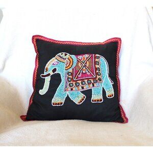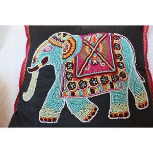 Atira Designs elephant handmade beaded pillow colorful animal safari made India