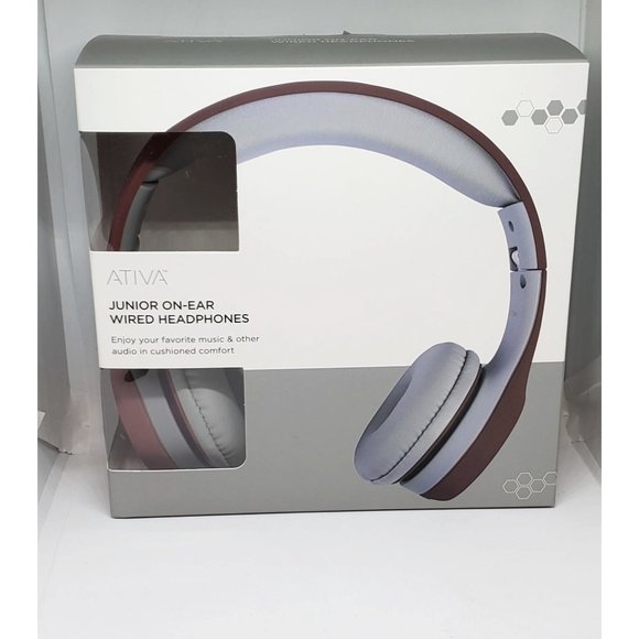 Ativa Junior On-Ear Wired Headphones Red and Gray for Kids with Audio Cable NIB
