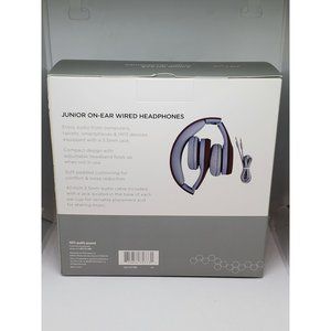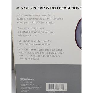 Compact on-ear wired headphones with adjustable headband that folds when not in use. Includes 47" 3.5 mm audio cable, as well as jack located in base of each ear cup for sharing music.