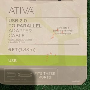 Ativa USB 6 foot adapter cable. Connects a parallel printer to your computer. New in box.