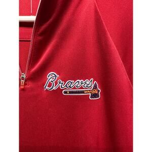 Atlanta Braves pullover, Braves quarter zip, Antigua MLB gear, women’s small, red Braves shirt, MLB team apparel, baseball fan gear, long sleeve quarter zip, sporty Braves top, game day outfit