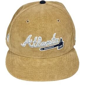 Atlanta Braves Corduroy New Era MLB Fitted Hat 7 3/8 Tan Beige Black New