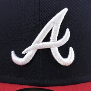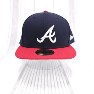 Atlanta Braves Hat Cap Fitted Mens 8 Navy Red MLB Baseball 59FIFTY New Era