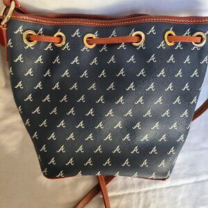 Gently used! Reasonable offers accepted! Beautiful in great condition!! Part of Dooney and Bourke's MLB line. Older model, no longer available on their site. Enjoy a sport bucket style bag with the Dooney & Bourke Atlanta Braves Kendall Crossbody. This classic crossbody bag is stylish and versatile, perfect for any occasion. Measures approximately: 11.5" x 7.25" x 10" Drawstring closure Two inside pockets (one zippered) Adjustable strap measures 10.5" in length Leather Spot clean Made in China
