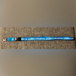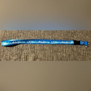 Show your team spirit with this vibrant blue lanyard featuring the iconic Atlanta Braves "A" logo and a skyline graphic, with "Atlanta" text repeating along the strap.