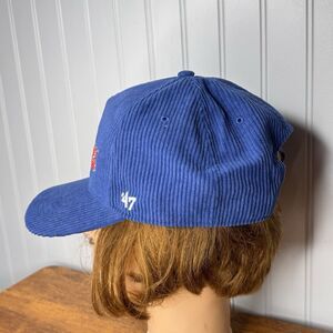The product is an officially licensed Atlanta Braves MLB '47 Brand Blue Corduroy Adjustable Snapback Hat Cap. This high-quality sports cap features the Atlanta Braves team logo and colors, making it the perfect accessory for any baseball fan. The adjustable snapback design ensures a comfortable and secure fit for both men and women. Perfect for showing support for your favorite team both at games and everyday wear.