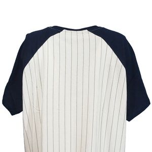 Item Description: Classic Pinstripe T-Shirt w/Team Contrast Color Raglan Sleeves. Team Screen Print Logo Front and Center