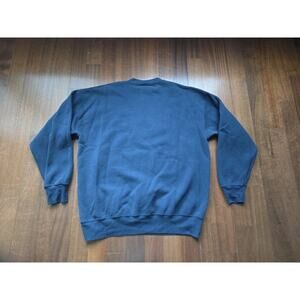 This Atlanta Braves MLB baseball embroidered sweatshirt in XL size is a vintage piece from the 90s, featuring a solid blue color with long sleeves and a crew neckline. Made from a blend of polyester and cotton, this sweatshirt is perfect for any baseball fan looking to show their team spirit. The embroidered design adds a touch of authenticity to this classic sweatshirt from Lee Sport, making it a must-have for any unisex adult who loves both baseball and style. Perfect for casual wear or working out, this sweatshirt is a great addition to any wardrobe.