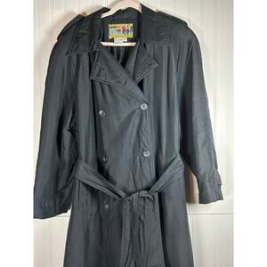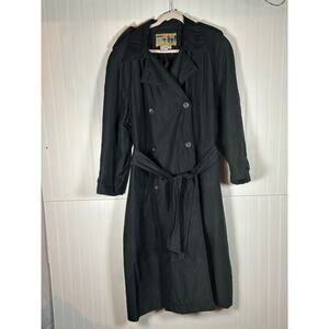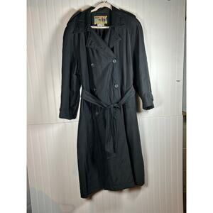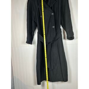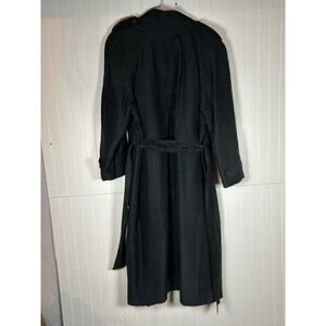 Atlantic Beach 100% Silk Black Classic Long Buttoned Trenchcoat Size Large