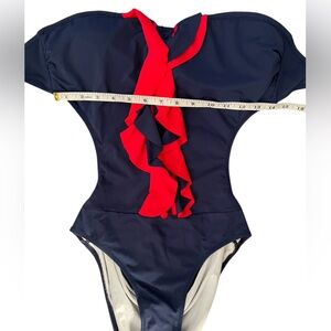 Atlantic Beach One Piece Swimsuit Navy and Red Ruffle Size 42