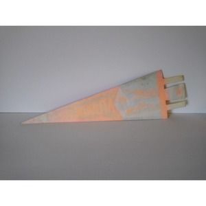 Vintage uncut tab felt banner. Appears unused. Circa 1978 - early 1980's. Size is 16.5" long and 5" at widest part. Has some age wear stains.