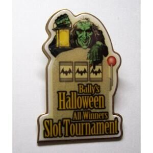 UNUSED old stock vintage casino quality enamel collectors badge. Has great green goblin scary artwork. This was issued only during a Bally Atlantic City slot tournament during the Halloween season. Back is stamped 'Union Made USA". Size is 1.5" x 1".