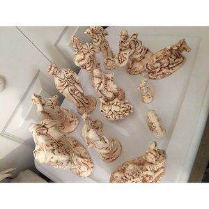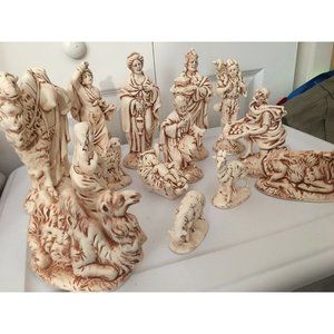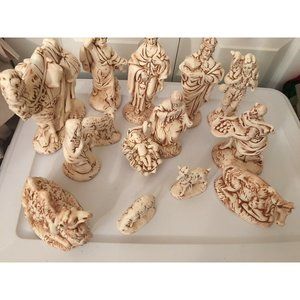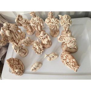 Atlantic Mold 14 Piece, Beige Ceramic Christmas Nativity Scene. Child mold has break off see pictures. Condition is Used. Shipped with USPS Priority Mail.