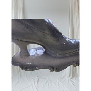 The Atlantic Mold 70's VTG Blue Victorian High-Top Button Boot Shoe Vase Planter is a unique ceramic piece from the late 20th century. With a Victorian style and high gloss finish, this medium-sized vase features an all-over blue color and a distinctive boot shape. Made in the United States by Atlantic Mold, this collectible item is perfect for all occasions and can be easily cleaned with a damp cloth. A licensed reproduction, this vintage piece adds a touch of charm and nostalgia to any decor.