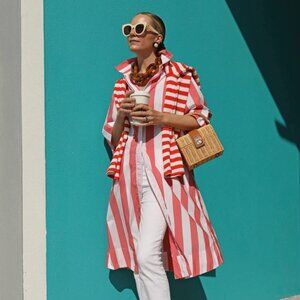 Atlantic pacific x lake marnie caftan red white stripe shirt dress small