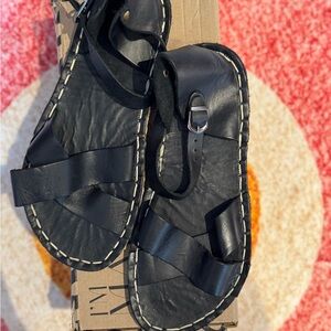 Atlantis Black Leather Sandals with Buckle 8.5 W