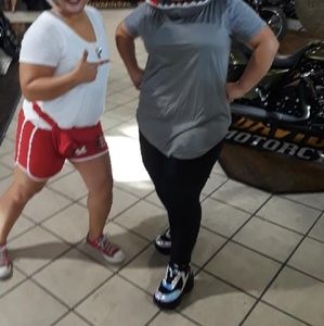 Holographic platform sneakers with black trim. Worn twice for a Halloween event. They have very minimal scuffs, nothing noticeable when wearing them. About 2.5 or 3 inches tall.