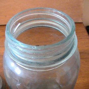 We believe this quart jar was manufactured between 1915- 1925. It is embossed with ATLAS STRONG SHOULDER MASON. Bottom has the number 2. The jar rim is smooth and in excellent condition. There is a small nick and a scratch on the shoulder. Neither can be seen when the lid is on. It has a couple of scratches on the bottom. Great Seeding gives this jar a unique character.