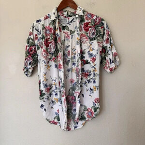 Atlast Studio Woman White Floral Blouse Button Shirt Cottage Top Size Small