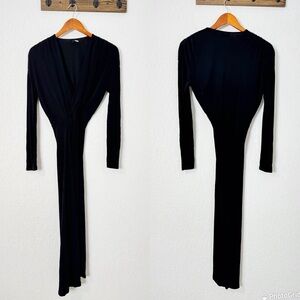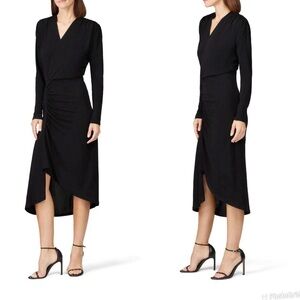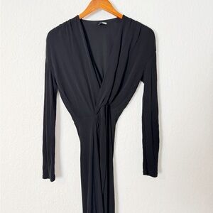 Atlein Black Long Sleeve Ruched Dress