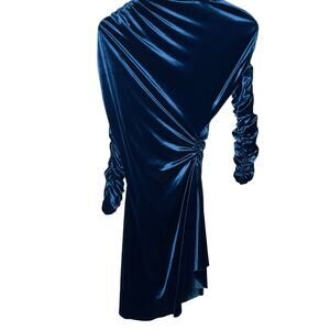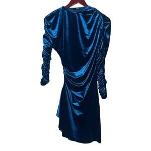 Atlein Blue Velvet Ruched Long Sleeve Mini Dress sz 42 XL