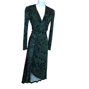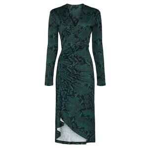 Atlein Python Ruched Midi Wrap Dress Green Size 2 Jersey Career Designer $350