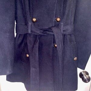Atmosphere Black Double Breasted Belted Business Casual Peacoat Size US 6