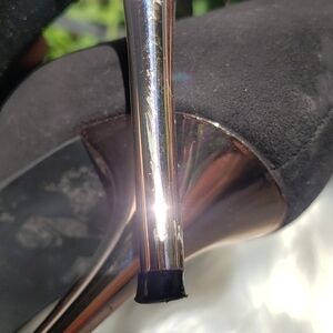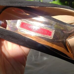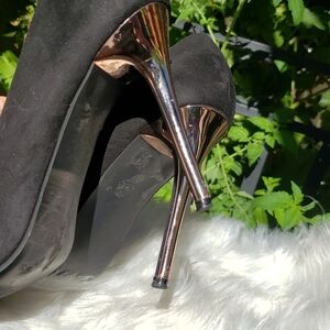 Atmosphere black suede basic heels with a metallic rose gold heel. Size 8.Closet staple. approx 4.5” heel