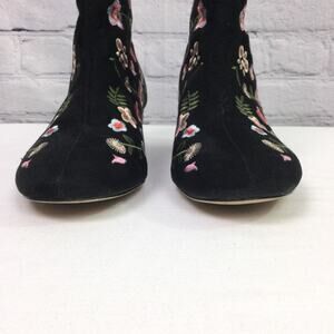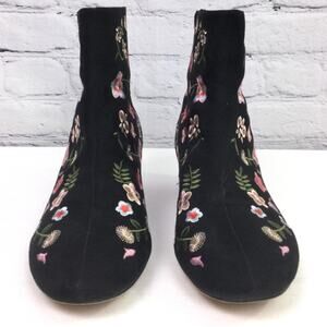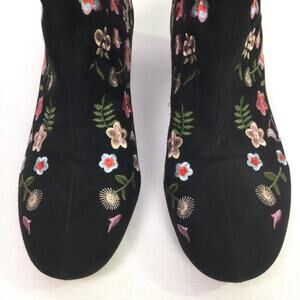 Atmosphere Boho Festival Floral 90s Style Embroidered Chunky Heel Round Toe Black Faux Suede Zippered Ankle Bootie Women's Size 9