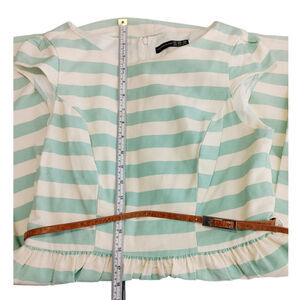 Atmosphere Cap Sleeve Fit & Flare Belted Dress Mint Green White Stripe Womens 12
