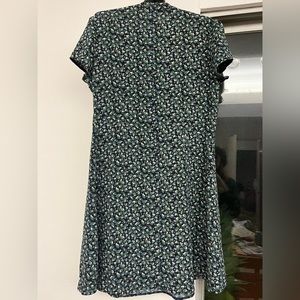 This dress has a high neckline and zips up the back. It was purchased at Primark in the UK and is a US 10 with some stretch. It’s a flattering and cute dress! In excellent used condition with no rips, tears, or stains.