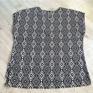 Atmosphere Ikat Print Cap Sleeve Top | Black/White Size 10