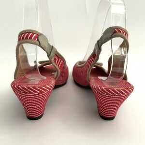 Atmosphere Kitten Heel Sandals Size 41 US 8M Red Stripe Slingback Peep-toe
