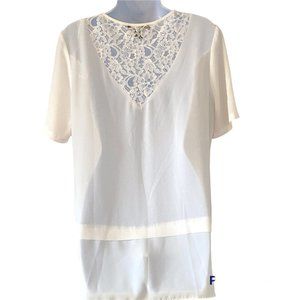 Atmosphere Lace Back V neck Blouse Cream Ivory Size 10