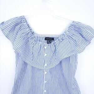 Atmosphere Off Shoulder Top Size 6, Blue White, Cotton, Summer Shirt, Ruffles. I believe it fits more like an 2-4 rather than a 6.