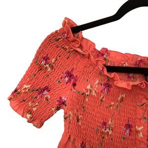 Atmosphere Off the Shoulder Smocked Red Orange Floral Top. Size 4.