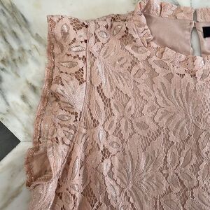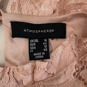 Atmosphere size 12 Pale Pink Sleeveless Lace Top with Ruffle detail at the sleeves and collar…excellent condition!