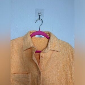 Atoir AUS The Santorini Mango Orange Terry Cloth Cropped Button Down Top S