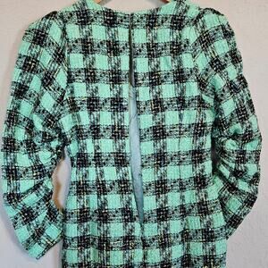 Atoir Leave Me Be Plaid Tweed Ruffled Boucle Dress in Aspen Green Women's 6